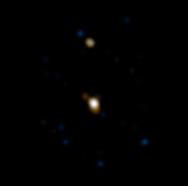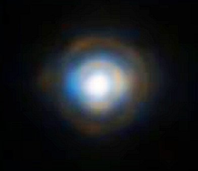Cнимок, сделанный с помощью системы адаптивной оптики телескопа VLTЗвезда HD 87643 со спутником. Фото ESO по методу интерферометрии.