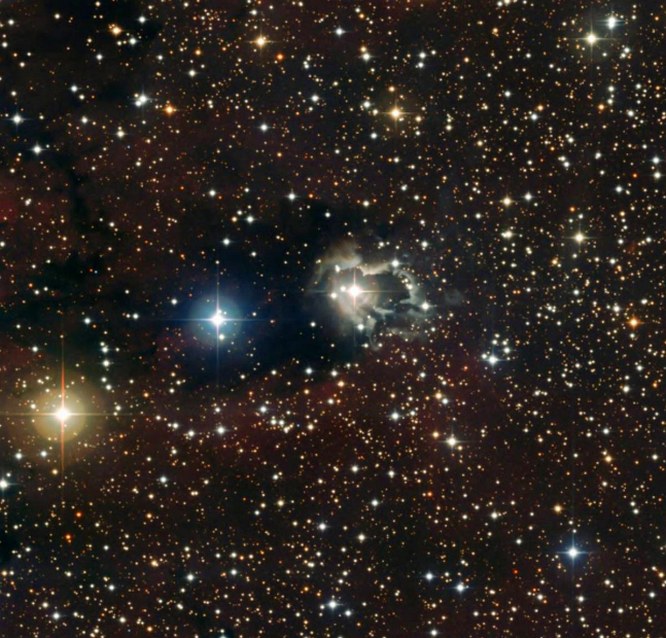 Газопылевое облако ( в центре ), окружающее звезду HD 87643