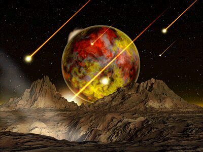 нечто размером с Марс врезалось в Землю, выбросив в космос тучу каменных осколков, некоторые