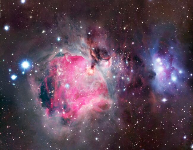 На рисунке вы видите детальное изображение Большой туманности Ориона, полученное на 3.6-