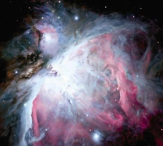 Туманность Ориона представляет скопление молодых ярких звезд, горячего газа и темной пыли.
